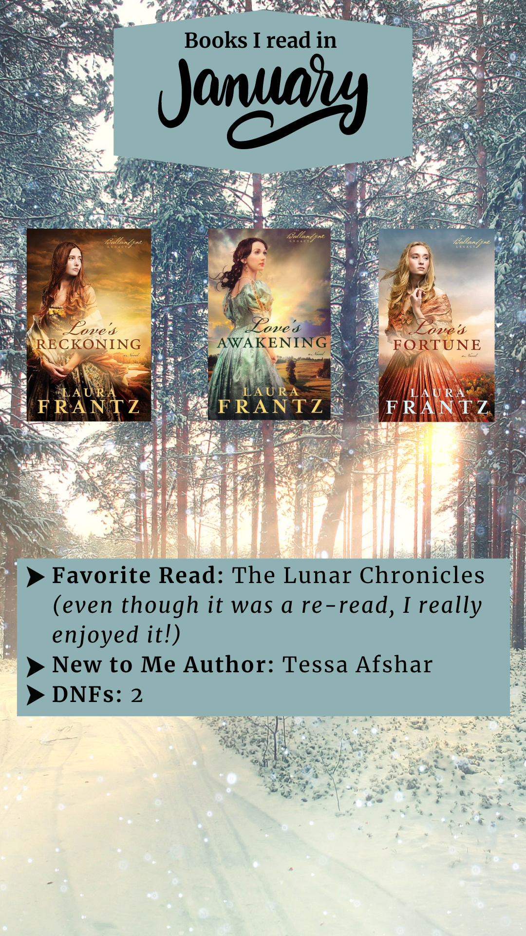 February is already a slower month for reading since I was working hard to get my novella, Winter’s Wedding, out into the world. Add in a growing seven month old, and you can probably understand why February will showcase fewer books!
